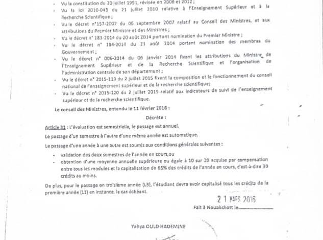 وأوضح البيان أن شروط النجاح والانتقال محددة في المادة 31 من المرسوم رقم 044/2016 الصادر بتاريخ 21 مارس 2016، والتي تشترط لاستيفاء السنة الدراسية أحد الأمرين: