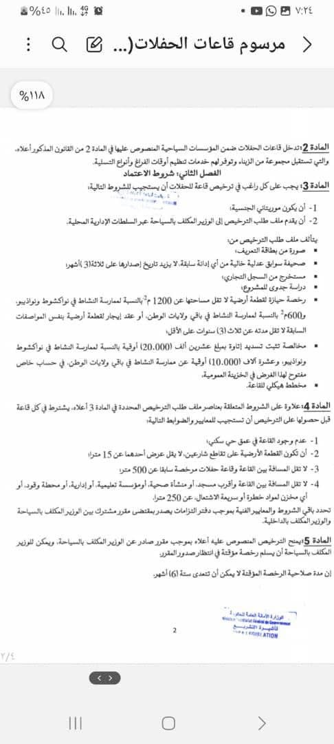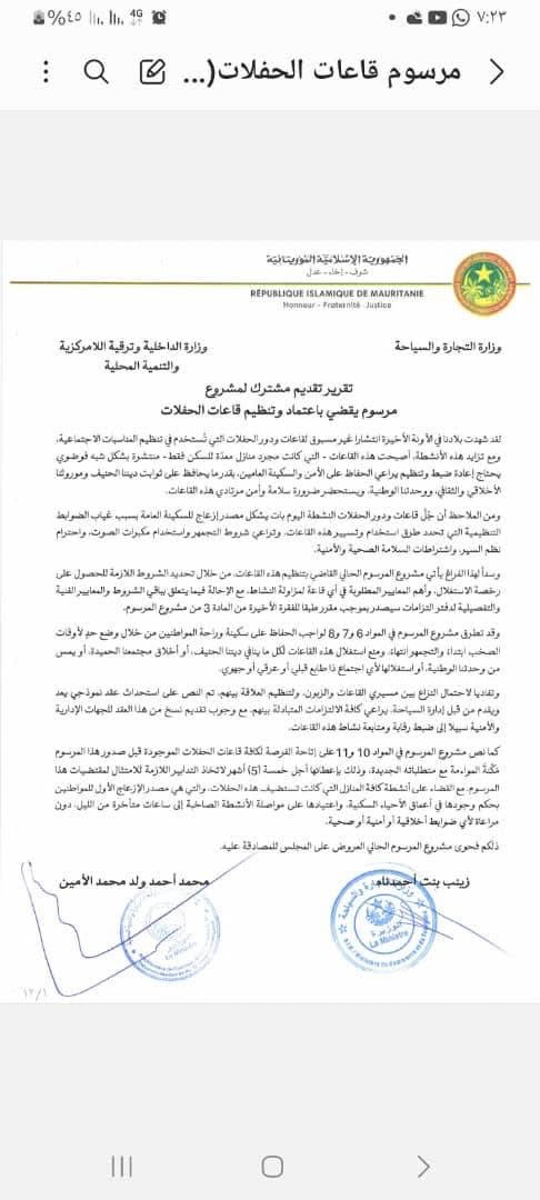 وأشادت المالكـات في بيان أصدرنه بـ"القرار الإصلاحي الشجاع" الذي اتخذته وزيرة التجارة والسياحة زينب منت أحمدناه، معتبرات أنه خطوة مهمة لتنظيم قطاع يشكل مصدر رزق لعشرات الأسر، لكنهن طالبن بمراجعة بعض الشروط الواردة في دفتر الالتزامات “الذي أُقرّ دون تشاور مع الفاعلين في الميدان”.