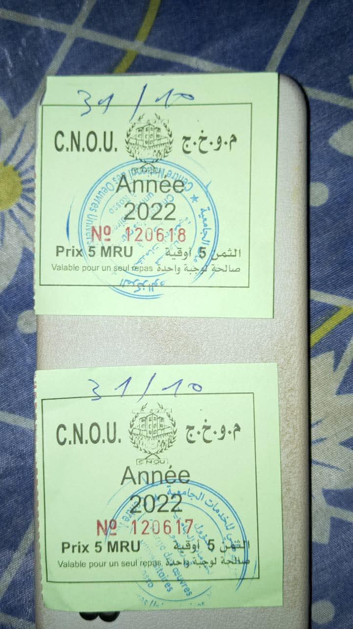 الراصد : تفاجأ عدد من طلبة المعهد العالي للتعليم التكنولوجي بروصو، اليوم خلال عملية توزيع تذاكر الإطعام من طرف إدارة المركز الوطني للخدمات الجامعية، بأن التذاكر الموزعة تحمل تاريخ سنة 2022