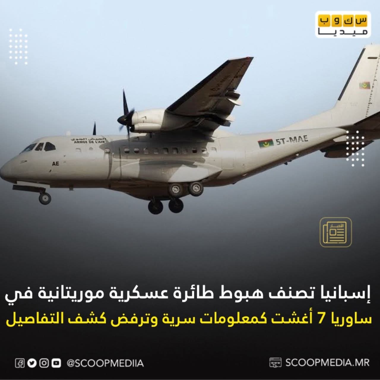 الراصد : كشف الصحفي الموريتاني المقيم في إسبانيا سيد محمد الطلبة؛ أن وزارة الشؤون الخارجية الإسبانية قررت تصنيف المعلومات المتعلقة بهبوط طائرة عسكرية موريتانية في شمال إسبانيا ضمن خانة المعلومات السرّية، رافضةً الكشف عن أي تفاصيل مرتبطة بالرحلة عبر بوابة الشفافية الإسبانية.