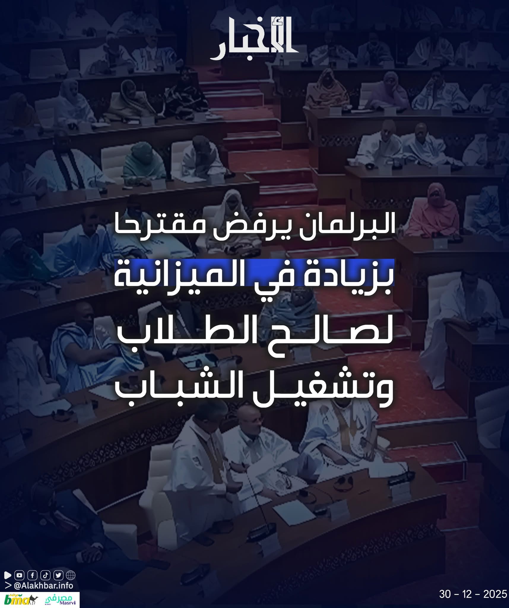 الراصد : رفض البرلمان مقترحا قدمه النائب المرتضى ولد اطفيل، يتضمن تعديلا بزيادة في الميزانية العامة للدولة لصالح الطلاب وتشغيل الشباب.