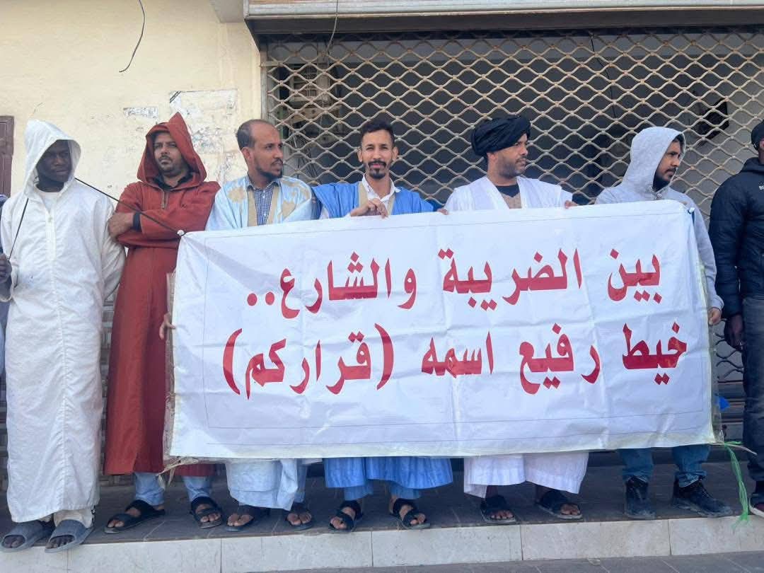 الراصد : صور من الوقفة الاحتجاجية التي نظمها أصحاب محلات بيع الهواتف بنواذيبو، رفضا للضريبة الجديدة. وقفةاحتجاجيةلباعة الهواتف