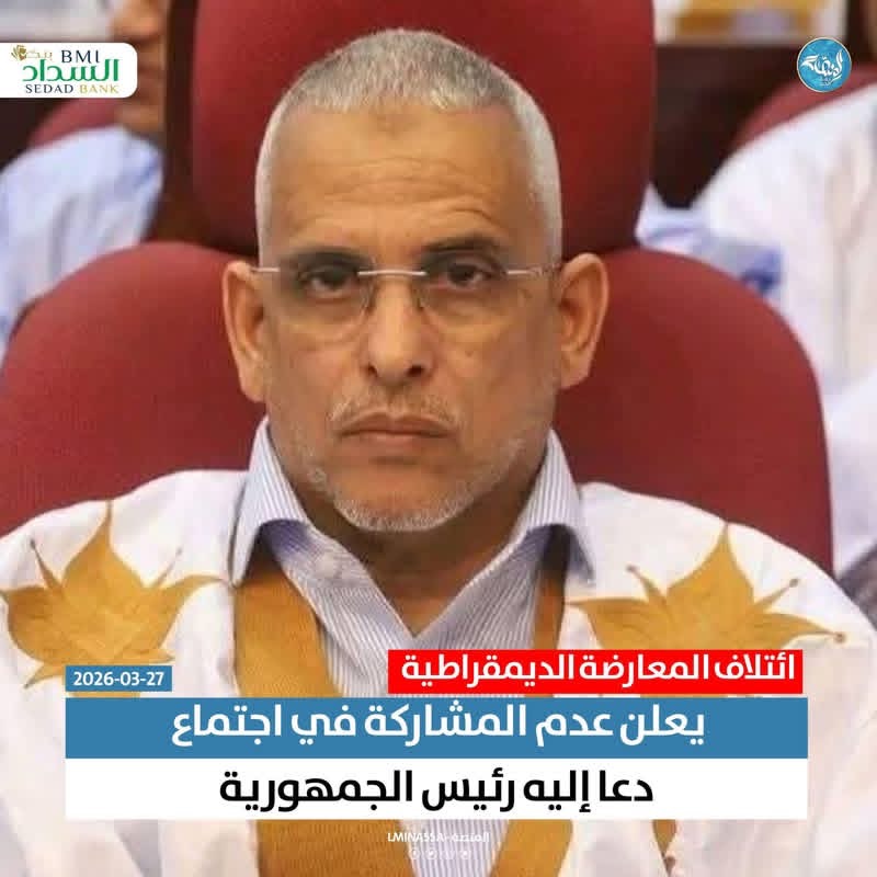 الراصد : أعلن قطب ائتلاف المعارضة الديمقراطية، الذي يترأسه حاليا المهندس المختار ولد الشيخ، رئيس حزب اتحاد قوى التغيير، قراره عدم المشاركة في الاجتماع الذي دعا إليه رئيس الجمهورية، وذلك حرصًا على وحدة مكونات الائتلاف وتماسك مواقفه السياسية.