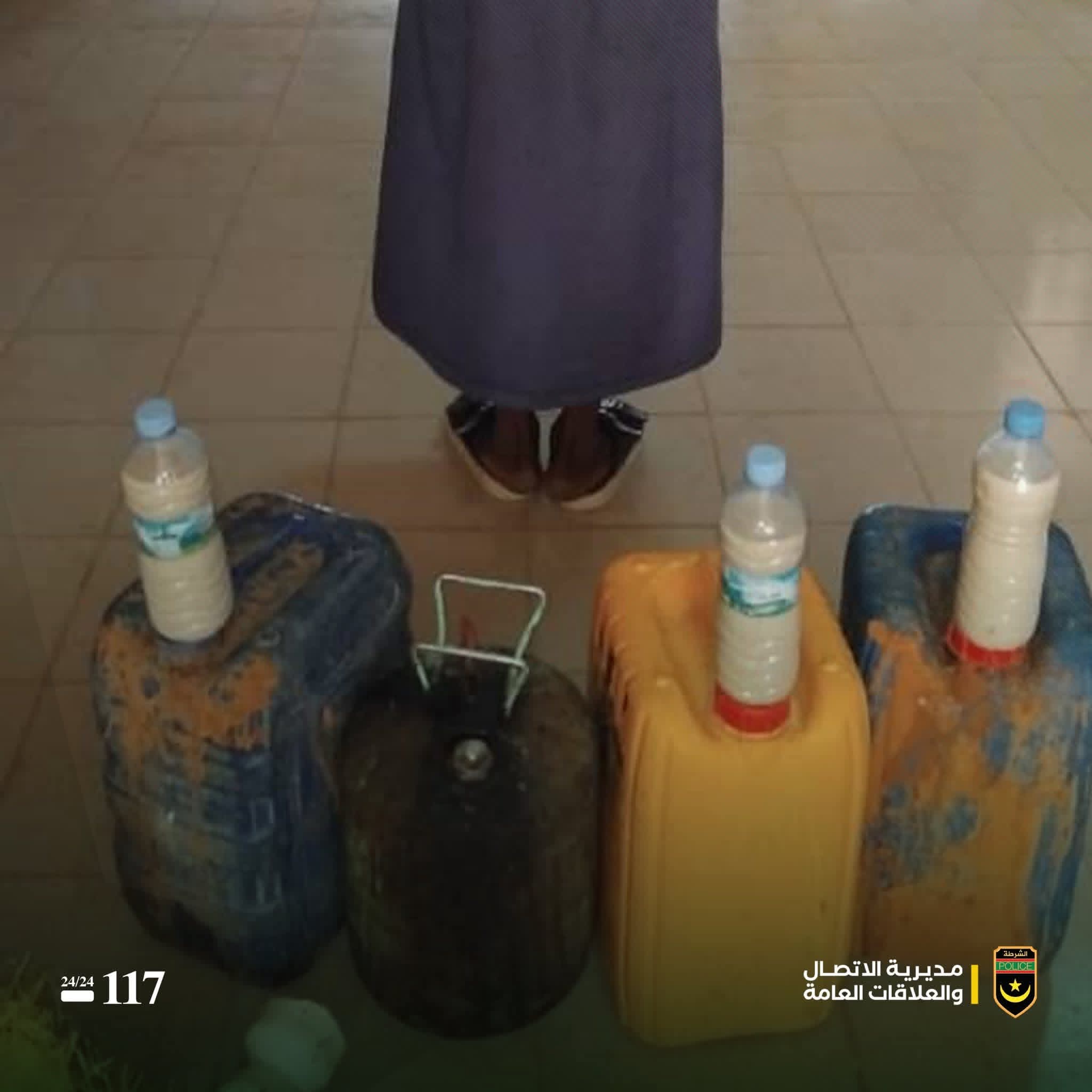 وأوضح بيان الشرطة أن عملية التفتيش أسفرت عن ضبط ثلاث قنينات، سعة كل واحدة منها 20 لترًا، مملوءة بالمشروب المذكور، إضافة إلى قنينة غاز تُستخدم في عملية التخمير.