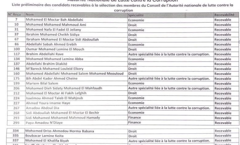 الراصد : أعلنت السلطة الوطنية لمكافحة الفساد اعتماد لائحة أولية تضم 29 مترشحا لعضوية مجلسها، بعد حصولهم على المعدلات المطلوبة وفق شبكة التقييم المعتمدة.