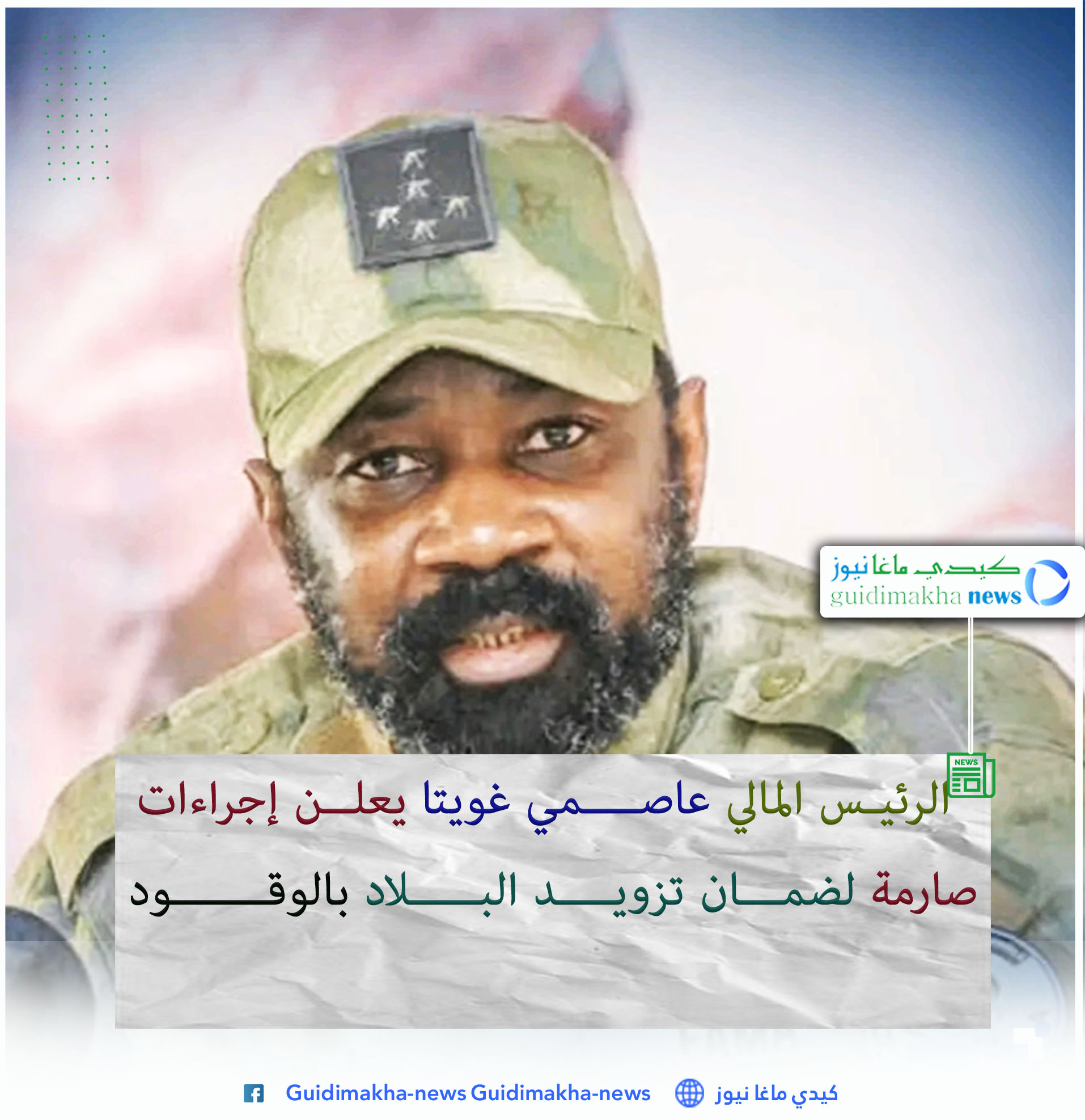 الراصد : أعلن الرئيس الانتقالي المالي، الجنرال عاصيمي غويتا، عن اتخاذ حكومته إجراءات صارمة لضمان تزويد البلاد بالوقود، في ظل الأزمة الخانقة التي تشهدها مالي منذ أسابيع بسبب حظر الجماعات المسلحة دخول الوقود القادم من دول الجوار.
