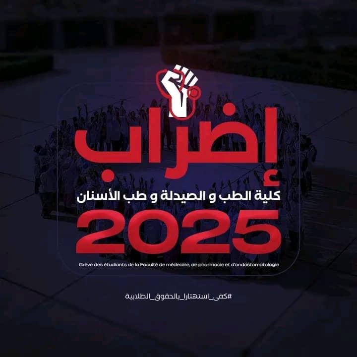 الراصد : أعلنت منسقية طلاب كلية الطب والصيدلة وطب الأسنان الدخول في إضراب شامل عن الحصص الدراسية والتربصات ابتداءً من الاثنين،