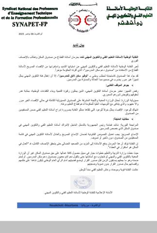 الأمانة الإعلامية للنقابة الوطنية لأساتذة التعليم الفني والتكوين المهني