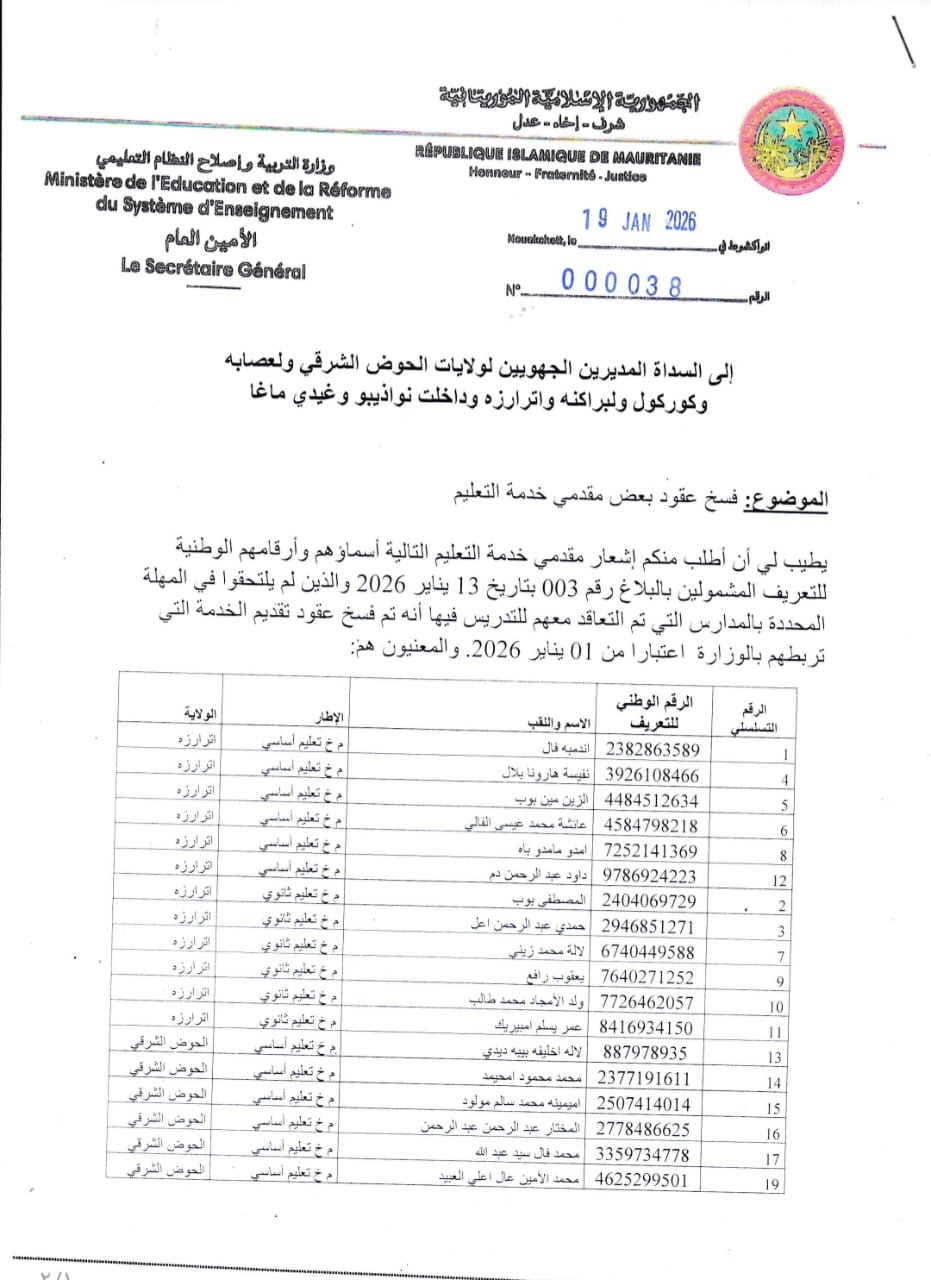 ويتوزع من أنهت الوزارة عقودهم على سبع ولايات هي؛ الحوض الشرقي، والعصابة، وكوركل، والبراكنة، والترارزة، وداخلت نواذيبو، وكيدي ماغا.