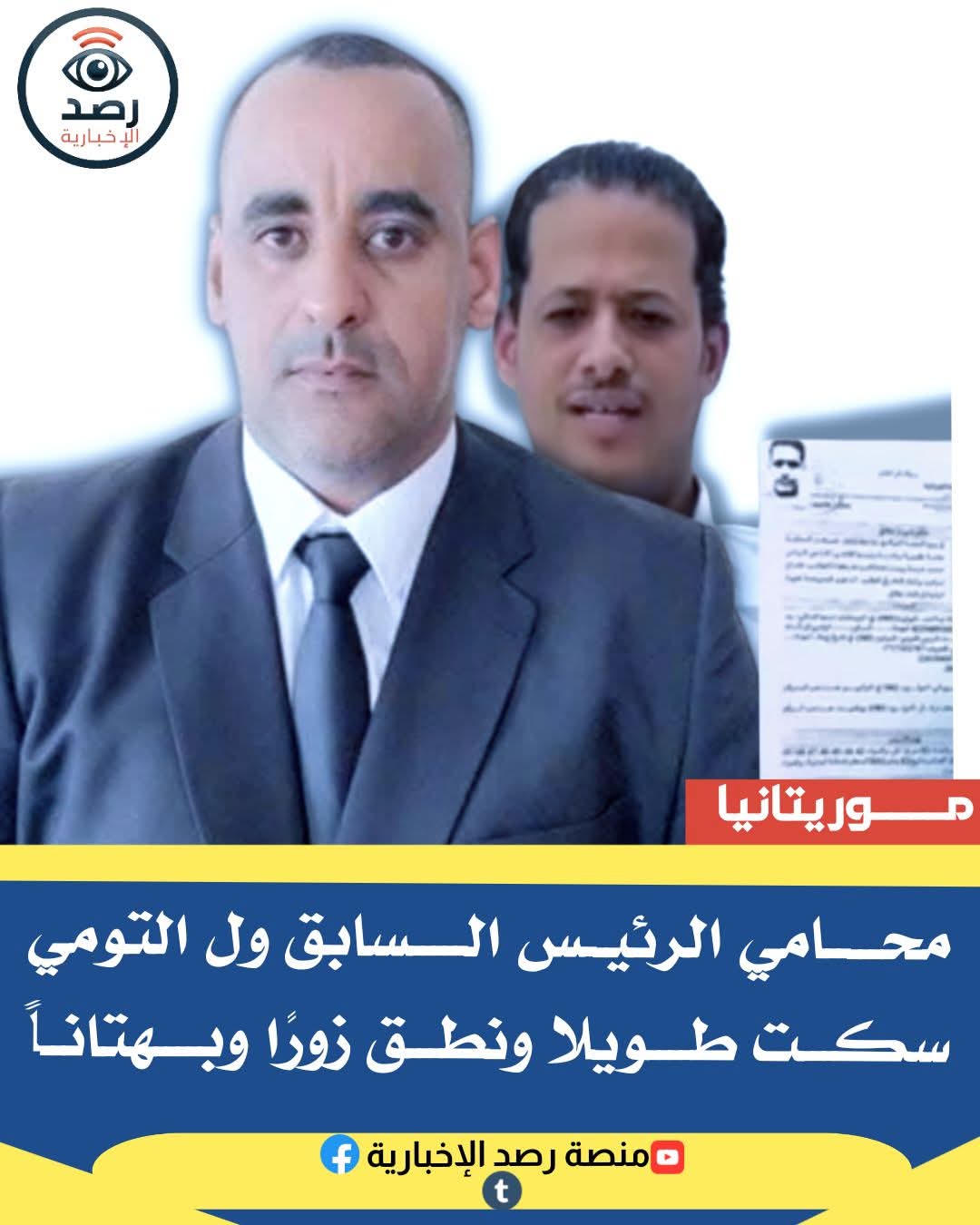 وفي الختام، عبّر محامي الرئيس السابق عن أسفه لما آل إليه حال ولد التومي، معتبرًا أنه تم استغلاله بشكل مخجل، ورضي لنفسه بالسقوط إلى هذا المستوى.