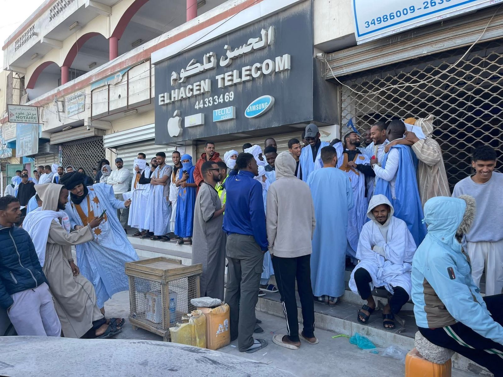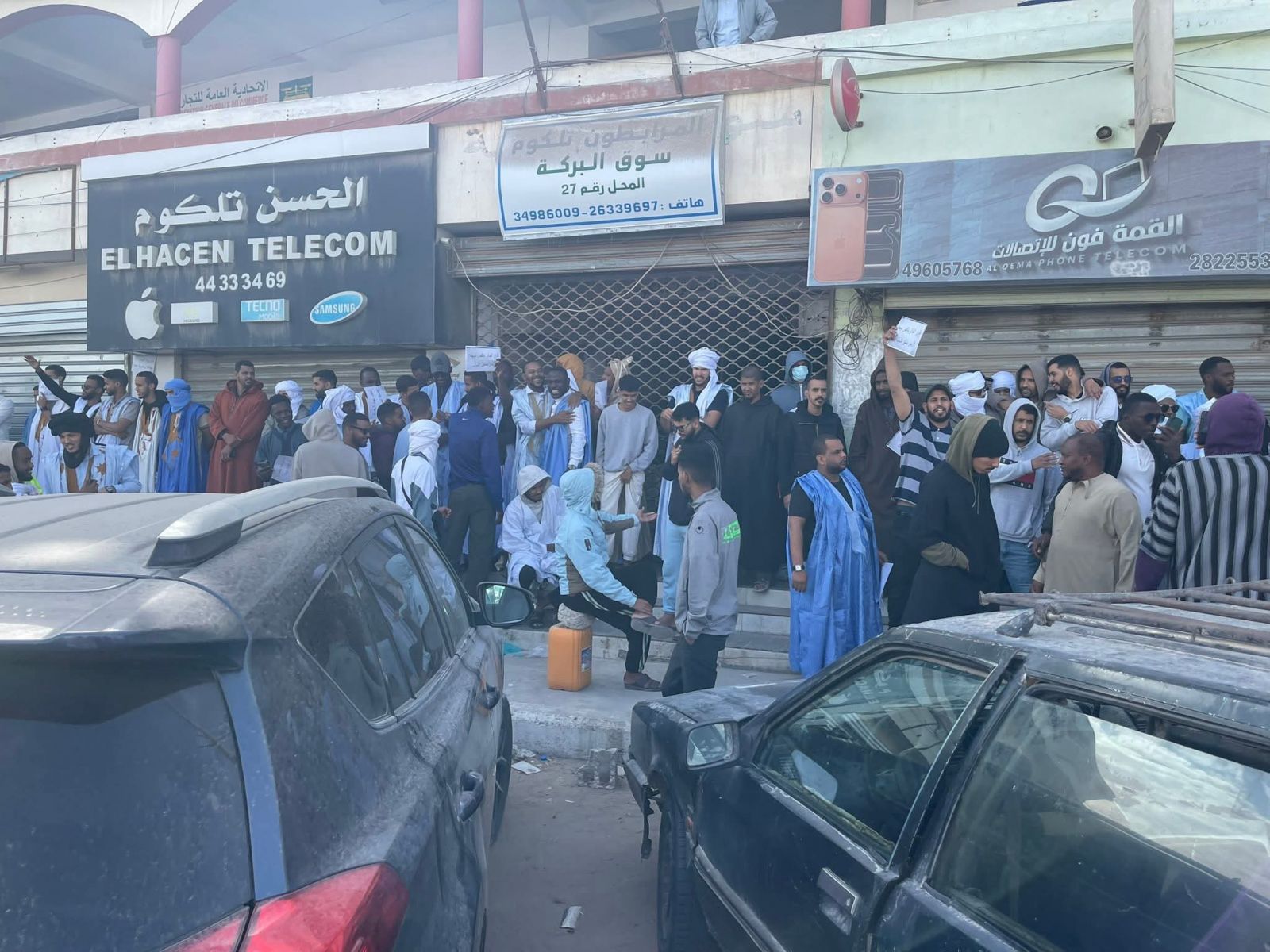 الراصد : صور من الوقفة الاحتجاجية التي نظمها أصحاب محلات بيع الهواتف بنواذيبو، رفضا للضريبة الجديدة. وقفةاحتجاجيةلباعة الهواتف